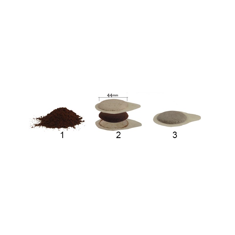 Dosettes papier ESE 44mm emballées singulièrement en atmosphère protégée. Le sachet doit être ouvert seulement lors de son utilisation.